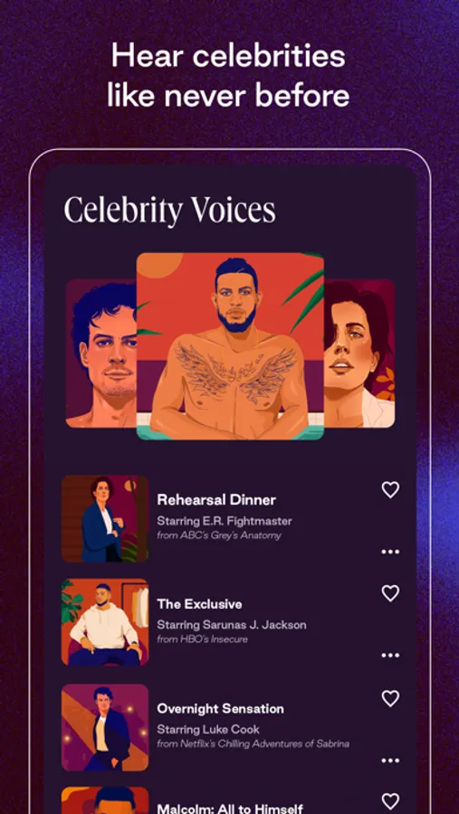 Let Dipsea show you just how much celebrity star power translates to audio. Sarunas J. Jackson (HBO’s Insecure) has a deep baritone that sends vibrations through the floor. E.R. Fightmaster (ABC’s Grey’s Anatomy) can wink with their voice. And Luke Cook (Netflix’s Chilling Adventures of Sabrina) has an Aussie accent that makes you want to get into mischief.