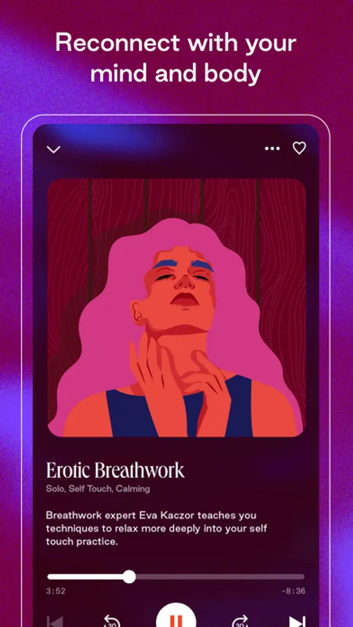 Close your eyes and follow along to our relaxing guided self pleasure audios, tune into your body with our expert-led erotic breathwork sessions, or awaken pleasure for you and a partner with partnered exercises.