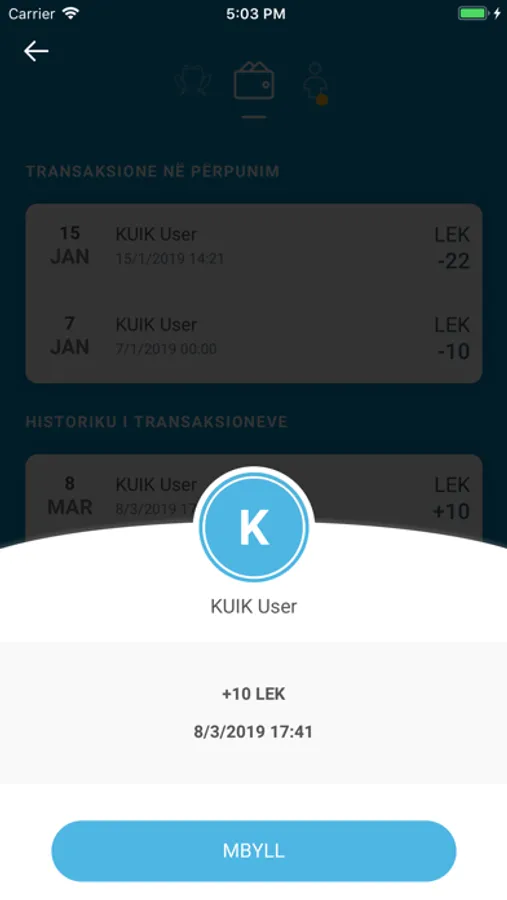 Gjithashtu, përmes KUIK ju mund të kontrolloni balancën e llogarisë, historikun e transaksioneve, etj.