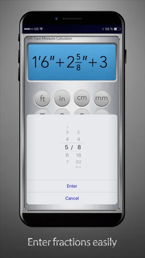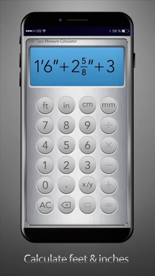 Carpenter Calculator lets you calculate feet and inches easily and display the results on a visual tape measure!
