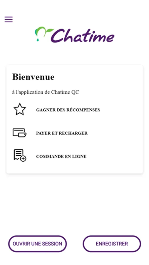 L'application officielle Chatime QC vous permet d'utiliser votre téléphone pour payer et gagner des points aux emplacements de Chatime QC. Numérisez le code-barres de l'application en magasin pour gagner des points sur vos achats et progresser vers les récompenses.Avec cette application, vous pouvez ajouter de l'argent à votre compte Chatime QC, configurer le rechargement automatique de votre compte, voir l'historique des transactions et suivre votre progression. moyen le plus rapide de payer à Chatime QC. Il suffit de scanner et de partir!