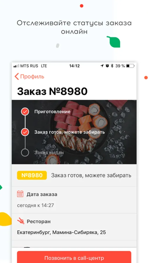 • В нашем приложении есть еще много-много полезных фич: личный кабинет, возможность отслеживать статус приготовления и доставки заказанных блюд, история выполненных заказов, начисление и расход бонусных баллов, онлайн оплата и другое…