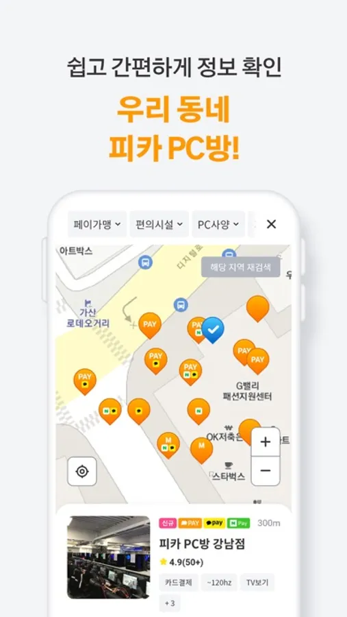 - 주요 도시의 지역별, 지하철역, 지도 검색을 통해 쉽고 편리한 PC방 찾기가 가능합니다.