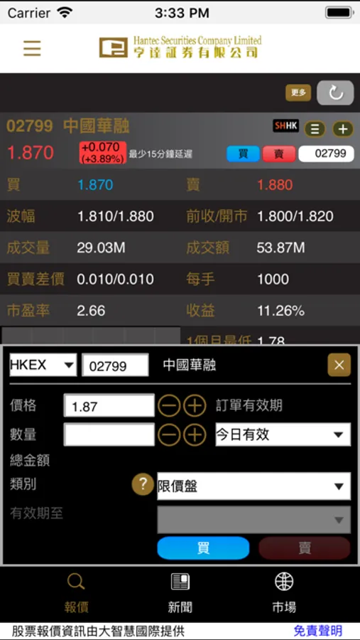 Hantec Securities Company Limited (Hantec) is committed to provide comprehensive investment services to our customers.Through the "Hantec Securities", you can check Hong Kong stock quotes and trade securities , catch any investment opportunities.