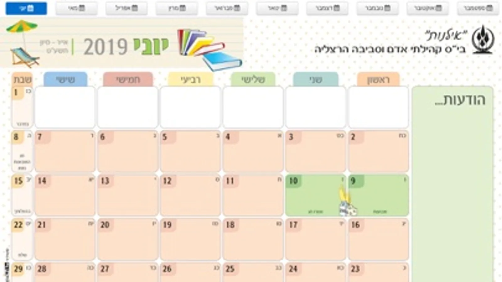 במסגרת יחסי העבודה החמים של סטודיו טל-רם עם מאות בתי ספר ברחבי הארץ, אנו מספקים לבתי הספר לוח חודשי ייחודי הכולל את כל המועדים, ימי הזיכרון וימים אחרים ע"פ דרישת ביה"ס במחיר מיוחד. הלוח החודשי מופק עבור כל תלמידי בית הספר ומהווה הטבה ייחודית ללקוחותינו הקבועים.