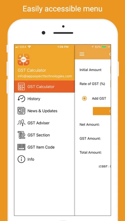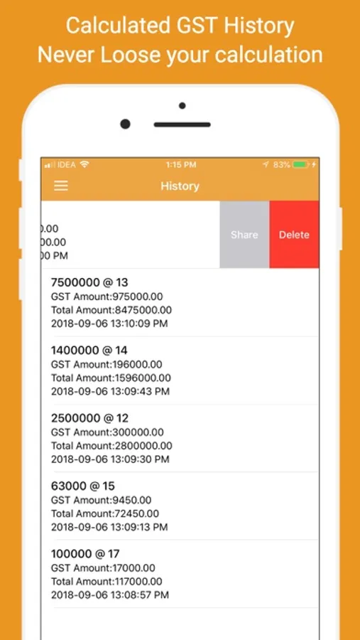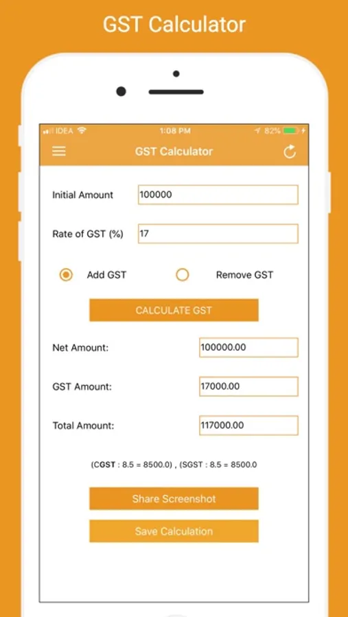 GST Calculator app provides easy calculation of GST based amount tax inclusive or exclusive with Act India & GST Bill India and HSN Codes.