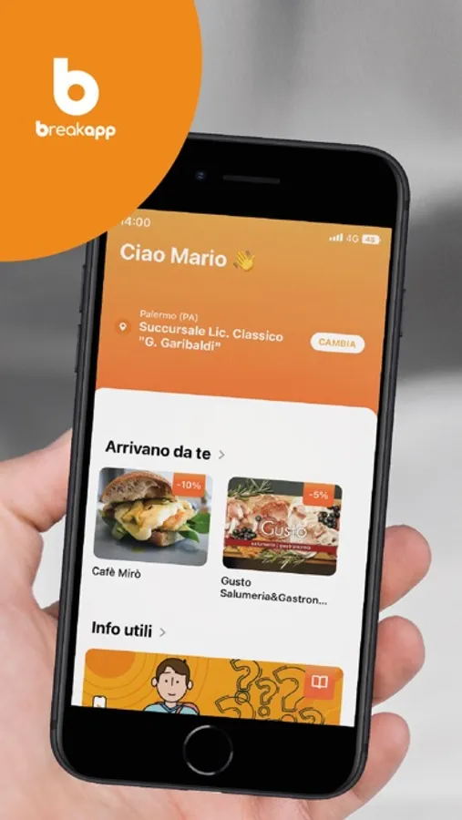 Breakapp è un servizio pratico e intuitivo che digitalizza l'ordine e la consegna dei pasti, grazie ad una rete di esercenti convenzionati.