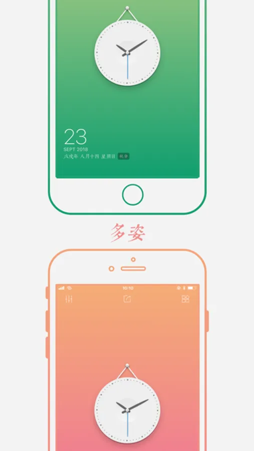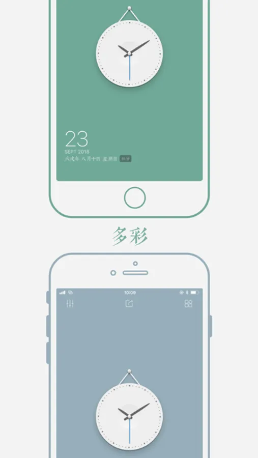 · 多种主题背景可以自由切换,目前包括纯色和渐变色主题,后续会加入纹理等拟物主题,相信可以搭配出您满意的时钟