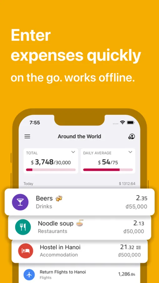 We designed TravelSpend specifically for travelers. It's quick and easy to use and works offline. You can add photos and spread expenses over multiple days.