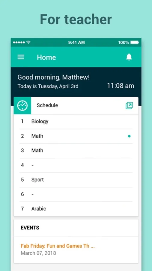 • Easy to set up – once teachers/parents or students log in, each will see their own configuration (Classes, courses ...).