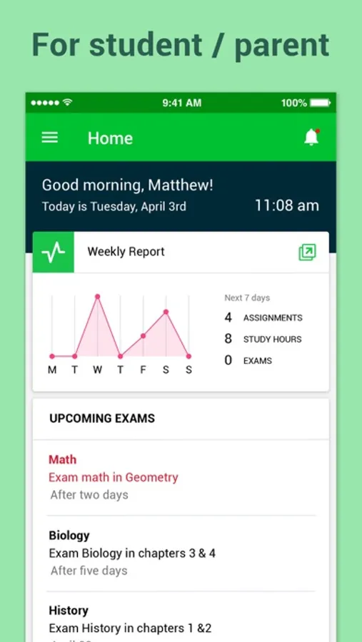 • Improves organization – Students and parents can see all of their assignments and school events on the agenda and calendar pages and all class materials attached to the assignments. Students can view the lessons took in each course in Journal's page.