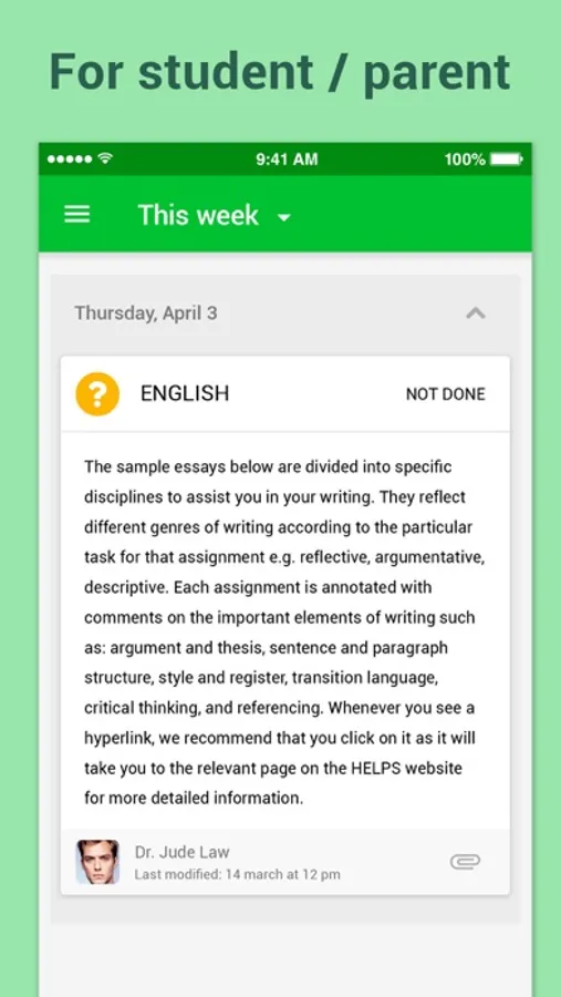 • Saves time – The simple, paperless assignment workflow allows teachers to create, review and grade assignments quickly, all in one place.