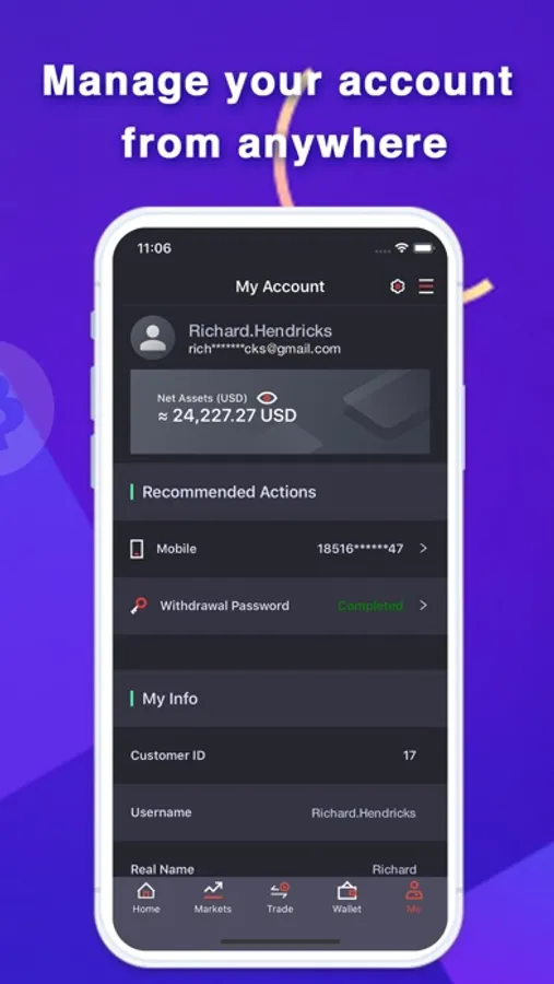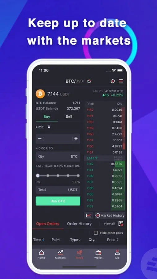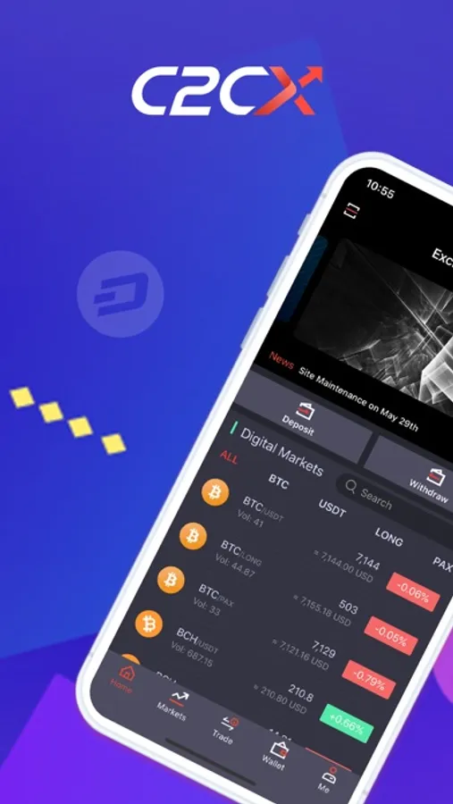 Your account at c2cx.com and app work in parallel. You will always have up to date and accurate data.