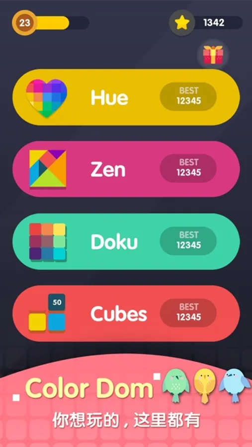 ColorDomis a game of collision and color elimination, where you will experience the magic about the elimination of numbers and colors