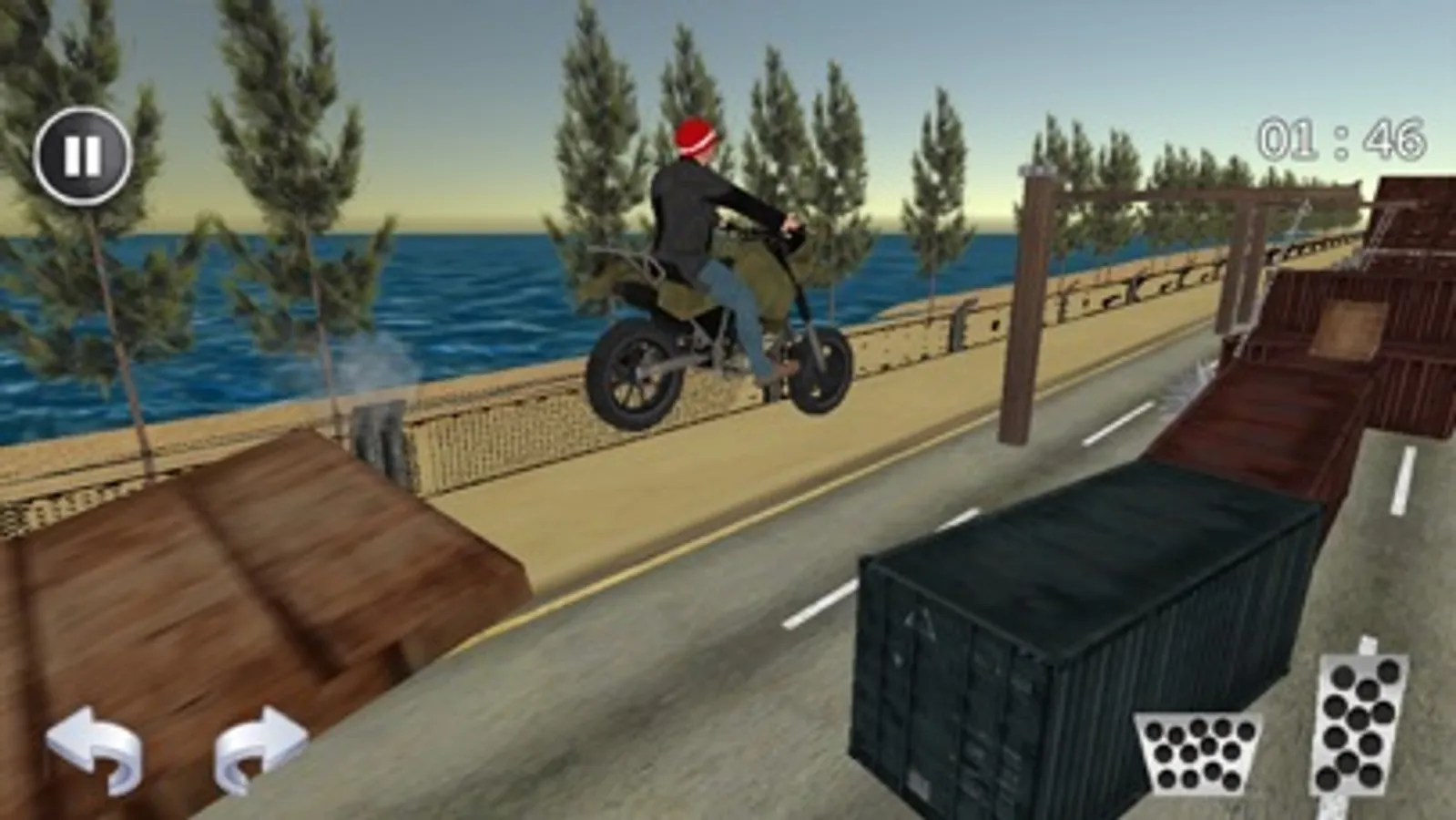 This simulation 3D game has multiple environments. Different containers are placed on the city roads. Driver has to race through the containers which have extreme tricky hurdles like Flames and Mines. Bike can be controlled through the user friendly buttons.