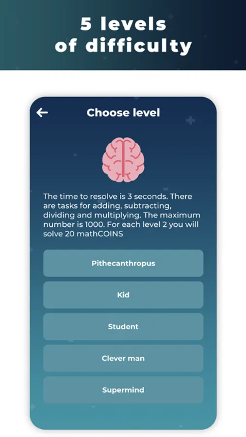 The game is suitable for all ages - from children to students and parents, well and where is without the super-minds? There are 5 difficulty levels. So choose the right one and do not let your friends beat your record.