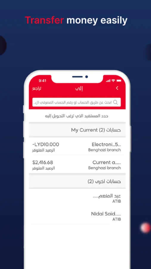 Money transfer: Send your money easily to any bank in Libya or within ATIB with more options.