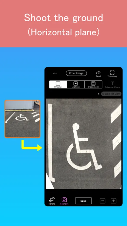 * Only flat planes can be converted into a straight frontal view. The app cannot convert curved planes.