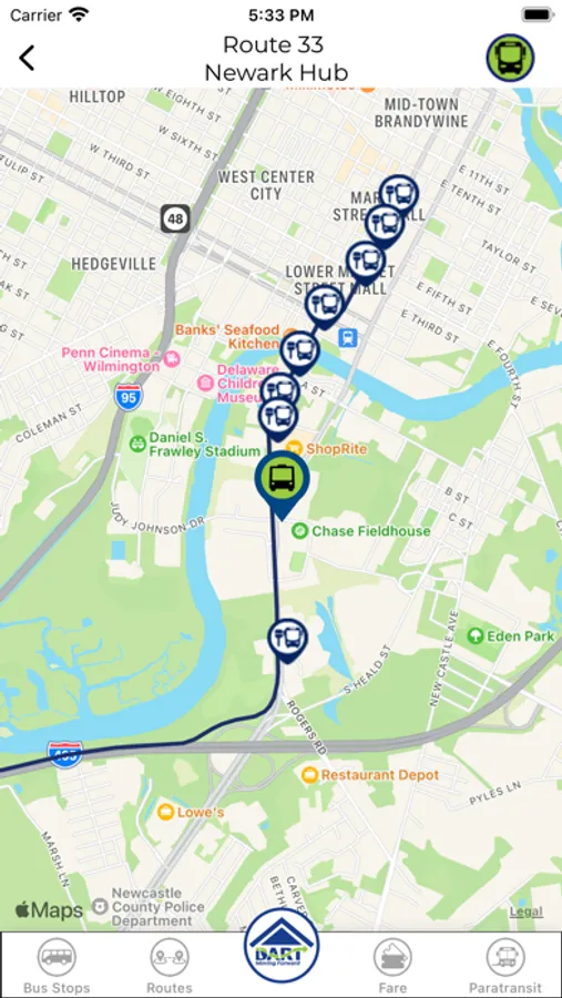 The Delaware Transit Corporation (DTC) is excited to announce the launch of the DART Transit App. The free app provides access to real-time bus information, DART Pass mobile payment option, along with trip planning and several other features, including: