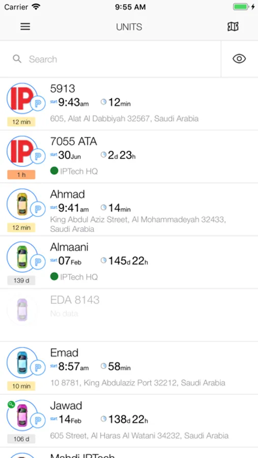 - Units list management. Get all the necessary information on movement and ignition state, data actuality, and unit location in real time.