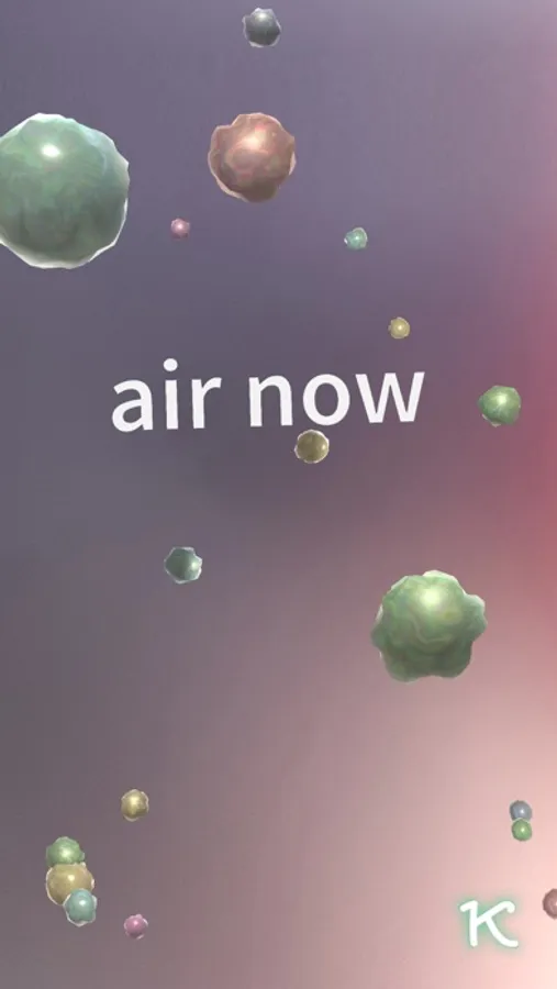 Start interacting with the air particles by simply moving your device in any direction. When ‘air now’ flashes on screen, the number of aerosols has increased dramatically, whereas ‘slow now’ marks a decrease. Read more about kairos and how atmospheric aerosol particles influence climate change by touching ?.