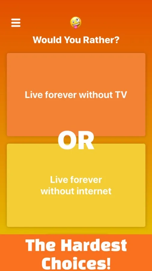 Would You Rather is a fun and addicting game where you have to choose between two difficult scenarios.