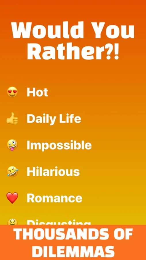 This app contains hundreds of the best hand-picked Would You Rather questions
