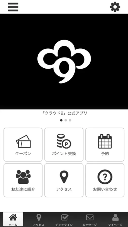 このアプリでは、クラウド9の最新情報の受け取りや便利な機能を使う事ができます。