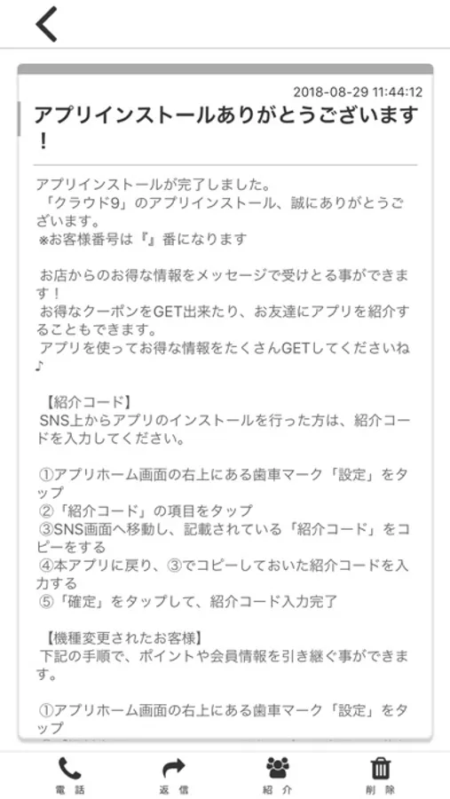 クラウド9のアプリをSNSを通じてお友達に紹介する事ができます。