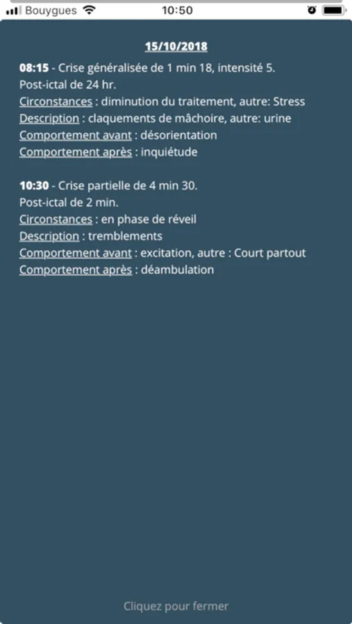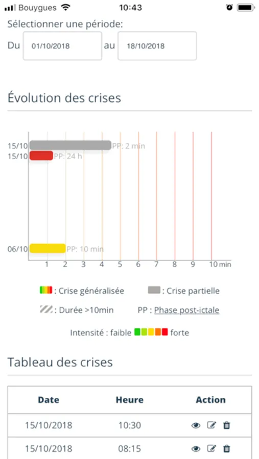 Grâce au bouton chronomètre, vous pouvez enregistrer simplement la durée d’une crise puis ajouter ensuite tous les détails nécessaires.