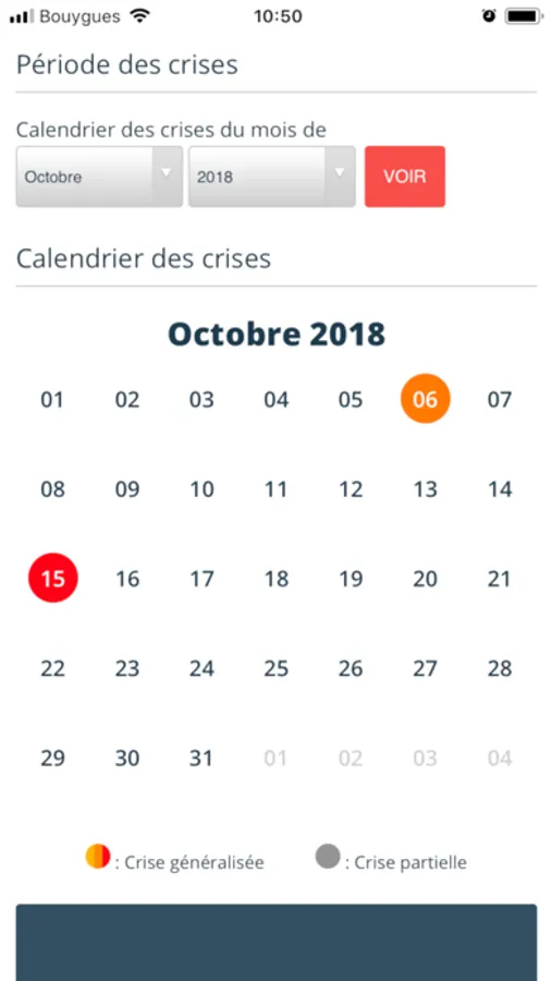 Les crises sont présentées sous forme d’un tableau de bord (calendrier) ou sous forme de graphique. Vous avez accès ainsi en coup d’œil à l’historique des crises. Il peut être imprimé ou envoyé directement à votre vétérinaire.