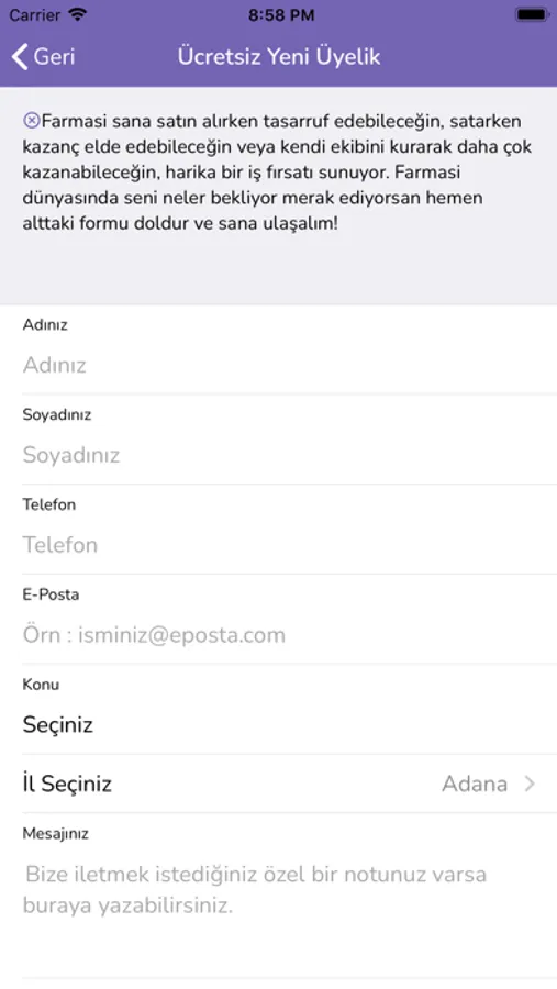 -- Yeni üyelik oluşturarak Farmasi Girişimcisisi olabilirsiniz.