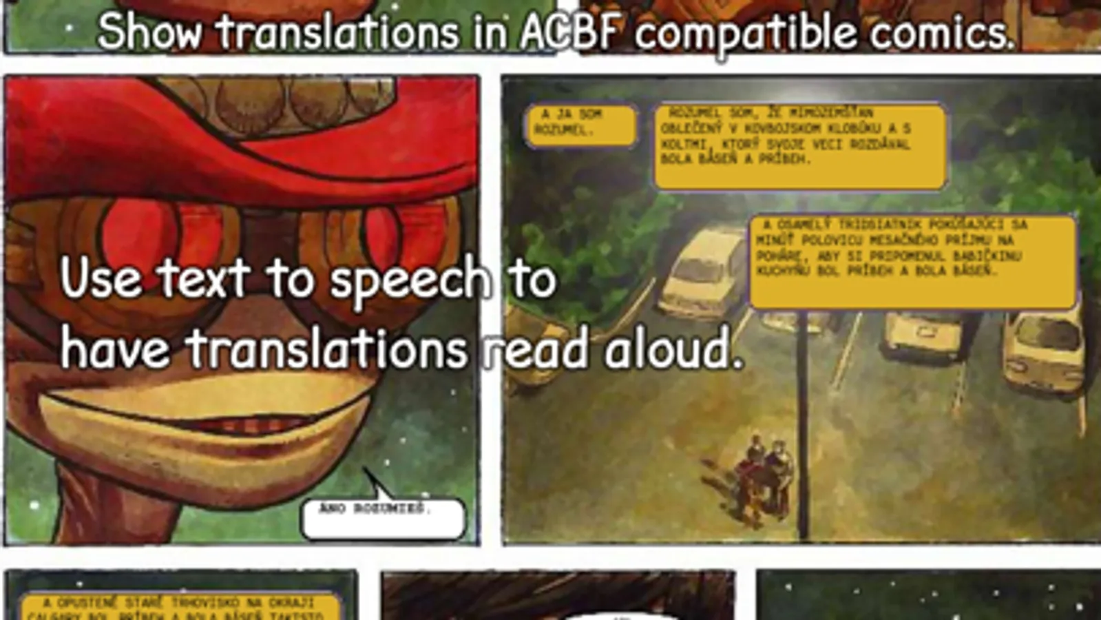•Advanced Comic Book Format compatible to provide translations, frames, and text–to–speech.
