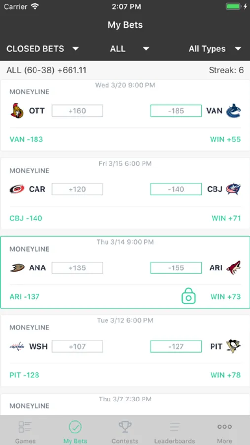 Bet Tracking - Monitor your open bets, and analyze your past performance by sport or bet type.
