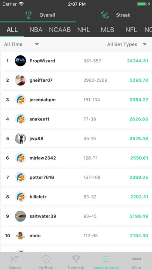 Leaderboards - Want to know who the best NFL money line bettor is? Or the top MLB player prop bettor? Or maybe you just want to check out who is the hottest overall bettor in the last week? Come check out our in-depth leaderboards with a wide variety of different filters for you to figure out who you should be following!
