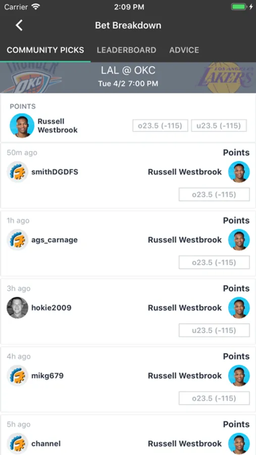 Advice - Read up on advice given by other members of the community as you as you scroll through the day's bets. Have some expertise to share? Post your own advice on your favorite bets for others to use to their advantage.