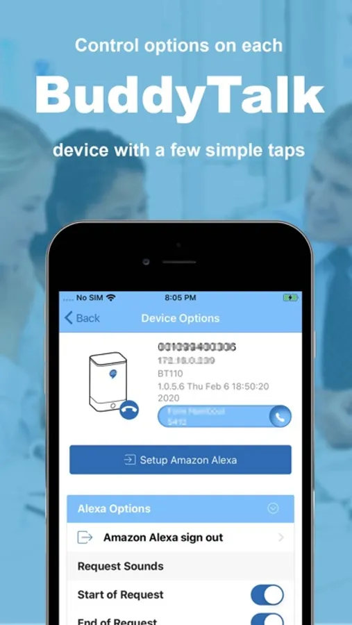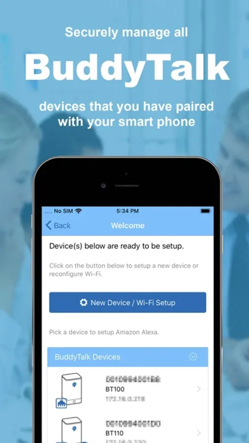With just a few taps, you can easily setup the WiFi settings on your BuddyTalk device. Once it is online, the app will let you register it using your Amazon Alexa account and add it to your personal group of Alexa enabled devices. If you already have the Amazon Alexa Shopping Cart app on your mobile device, the registration process is even simpler as the app automatically reaches out to Amazon to activate with one tap!