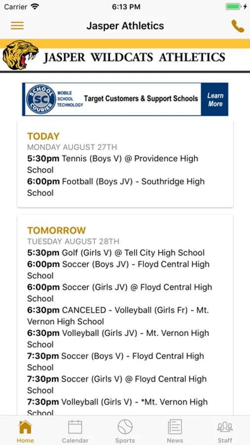 The Jasper High School Athletics app for iPhone, iPod, and iPad allows student, faculty, parents, and the community keep up-to-date with athletic communication. Greater Jasper Consolidated Schools are located in Jasper, Indiana, USA. Go Wildcats!