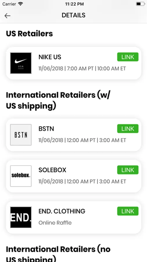 SOLE LINKS keeps you informed with upcoming sneaker releases and provide product links to authorized retailers. Set push notification on to get real time updates on restocks. Sign up to be able to save your favorite releases.