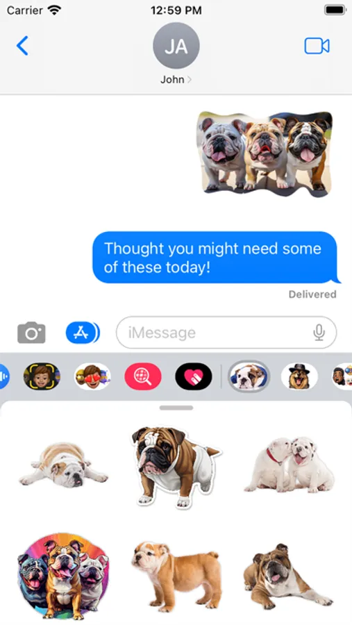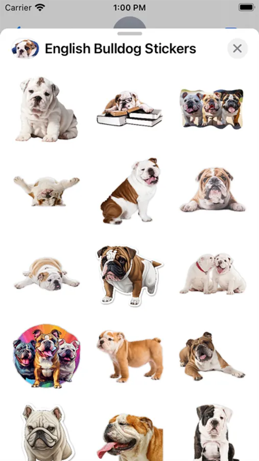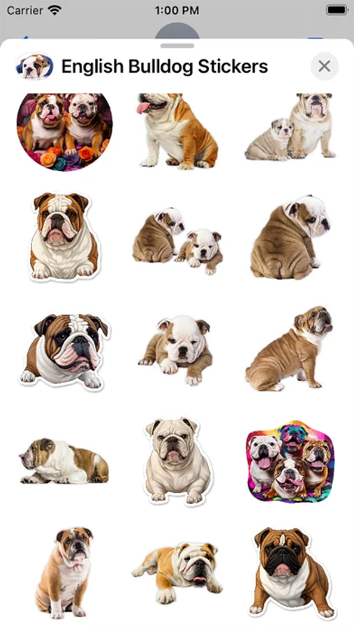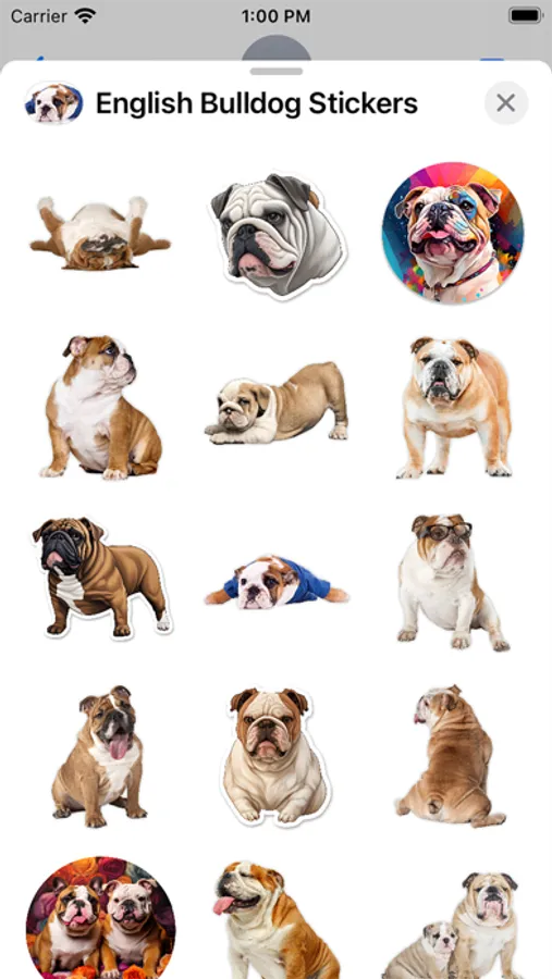 Unleash the cuteness overload with English Bulldog Stickers! Prepare to be smothered with adorable English Bulldogs, the indisputable rulers of charm and hilarity in the dog kingdom. These squishy-faced pooches are here to make your texting conversations paw-sitively delightful! From funny expressions to heart-melting antics, our Bulldogs will have you ROFLing in no time. It's impossible to resist their floppy ears, googly eyes, and wrinkly snouts that bring instant smiles. So, why settle for basic emojis when you can have a full pack of furry companions at your fingertips? Download now and unleash the ultimate Bulldog Bonanza in your chats! Get ready for a dog-gone good time!