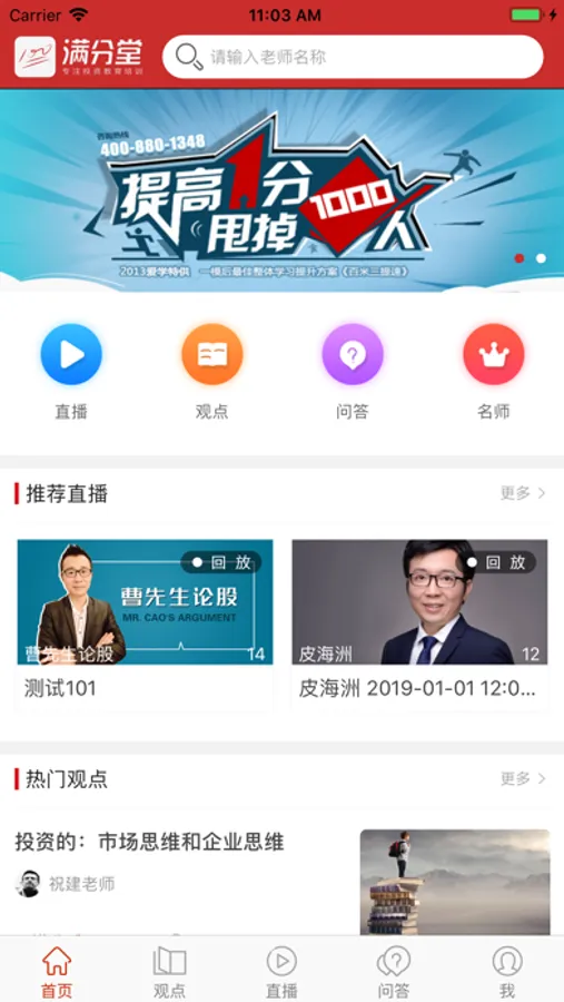 满分堂是由杭州满分堂教育科技有限公司开发的,专注于投资教育的知识分享网站。目前版本支持观点发布、视频直播、问答等三大功能。
