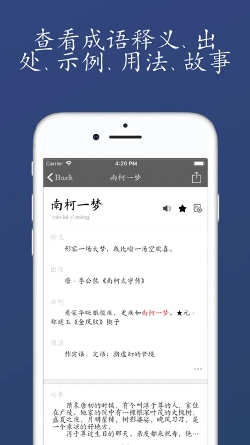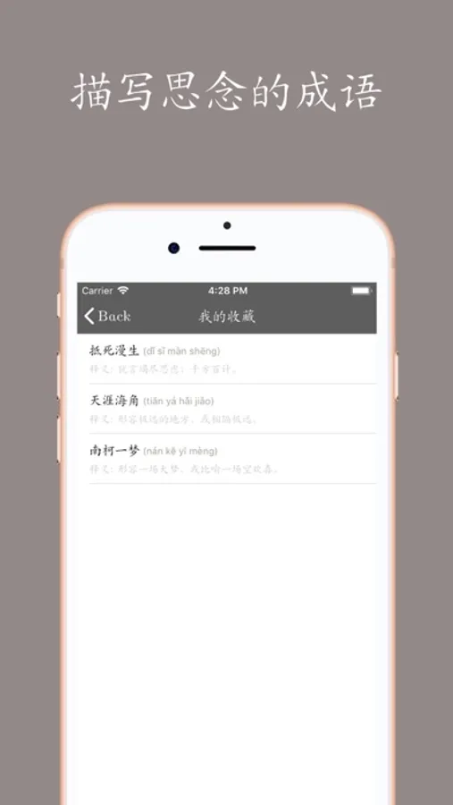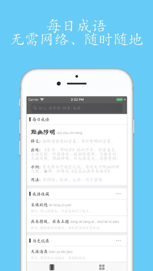 - 收藏喜欢的成语、浏览历史