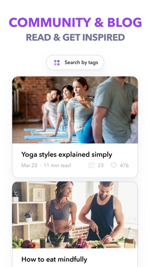 • All our programs are based on your personal needs. They are built to prepare your body from easy to more complex asanas and movements. Set your goals, specify training preferences and get going.
