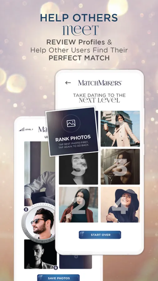 Self-improvement is at the heart of the MatchMakers community. Access your ranked photo results to test and improve pictures, update your profile to showcase the most attractive content. Keep improving to advance through each of the MatchMakers levels of dating!