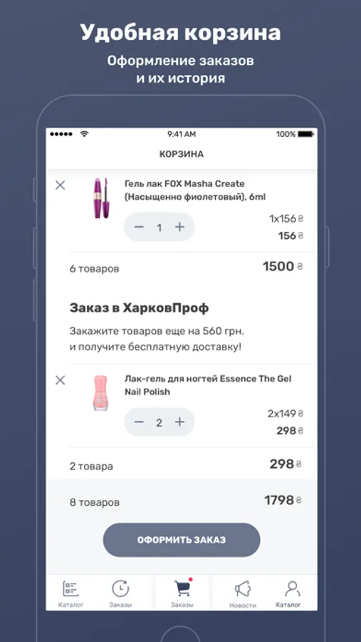Вы одновременно можете заказывать косметику разных брендов у разных представителей. Не нужно перемещаться из одного интернет магазина в другой, в поисках более выгодной цены, или другого бренда, все это доступно в приложении – Okspace.