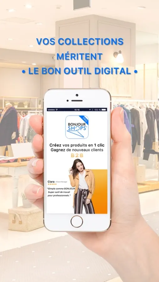 BONJOUR SHOPS est une application dédiée aux professionnels de la mode, + de 20 ans d’expérience métier B2B, offert en une solution digitale.