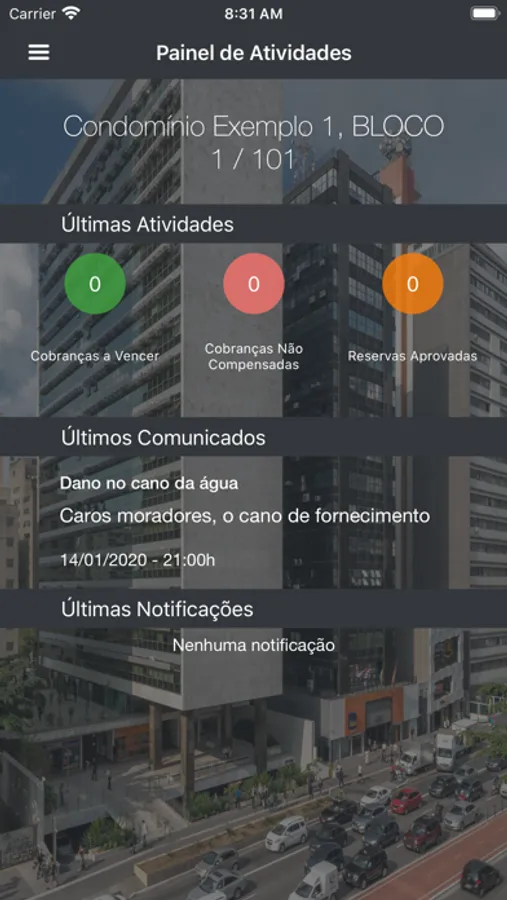 Visualizar cobranças em aberto da sua unidade e obter 2ª via de boletos (com recálculo automático de multas e juros);