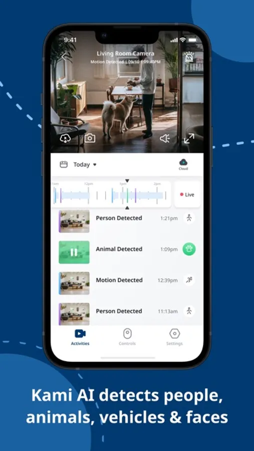 • Free 24-hour motion-captured video storage (and up to 30 days of video history with a paid subscription to Kami Cloud