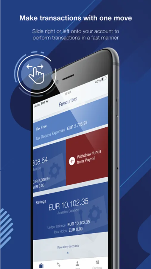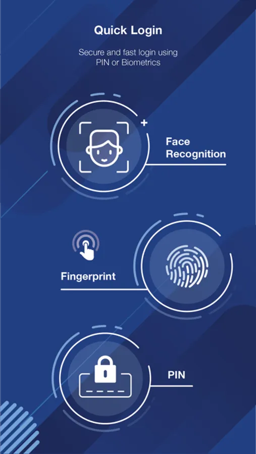 • quick login option by using a PIN or use of your biometrics (Fingerprint, FaceID).