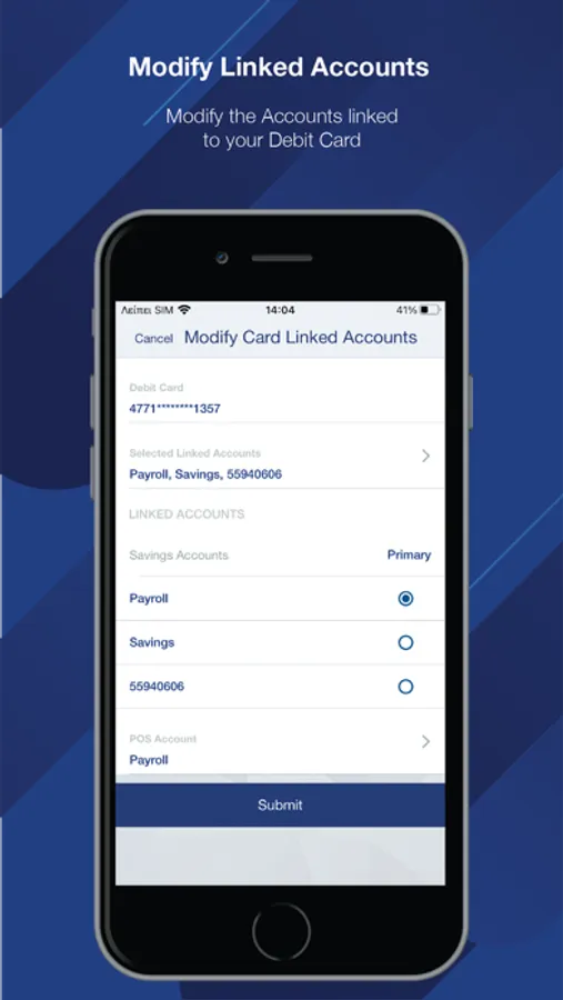 - modify the bank accounts linked to your Debit card.